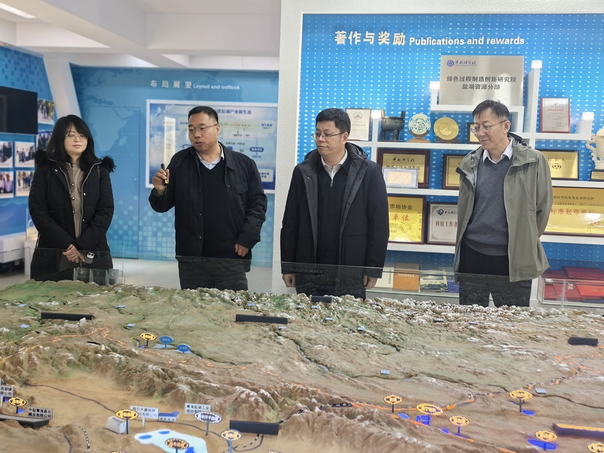 萬(wàn)士林一行先后參觀了青海鹽湖所科技成果展廳及地質(zhì)與環(huán)境實(shí)驗(yàn)室展覽館,詳細(xì)了解了研究所的歷史沿革、科研平臺(tái)建設(shè)、人才隊(duì)伍構(gòu)成、重要科研成果及在鹽湖資源開(kāi)發(fā)利用方面的研究進(jìn)展。